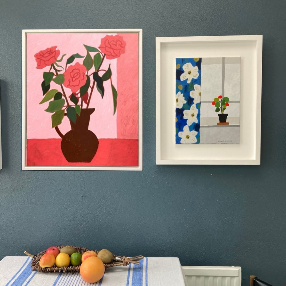 Original acrylic painting on canvas Inspired by roses bought for me on Mother's Day, after many hints… Size 50 x 60 cm Allow 3 weeks for framing Framed size 53 x 63 cm Or buy unframed! Free UK shipping