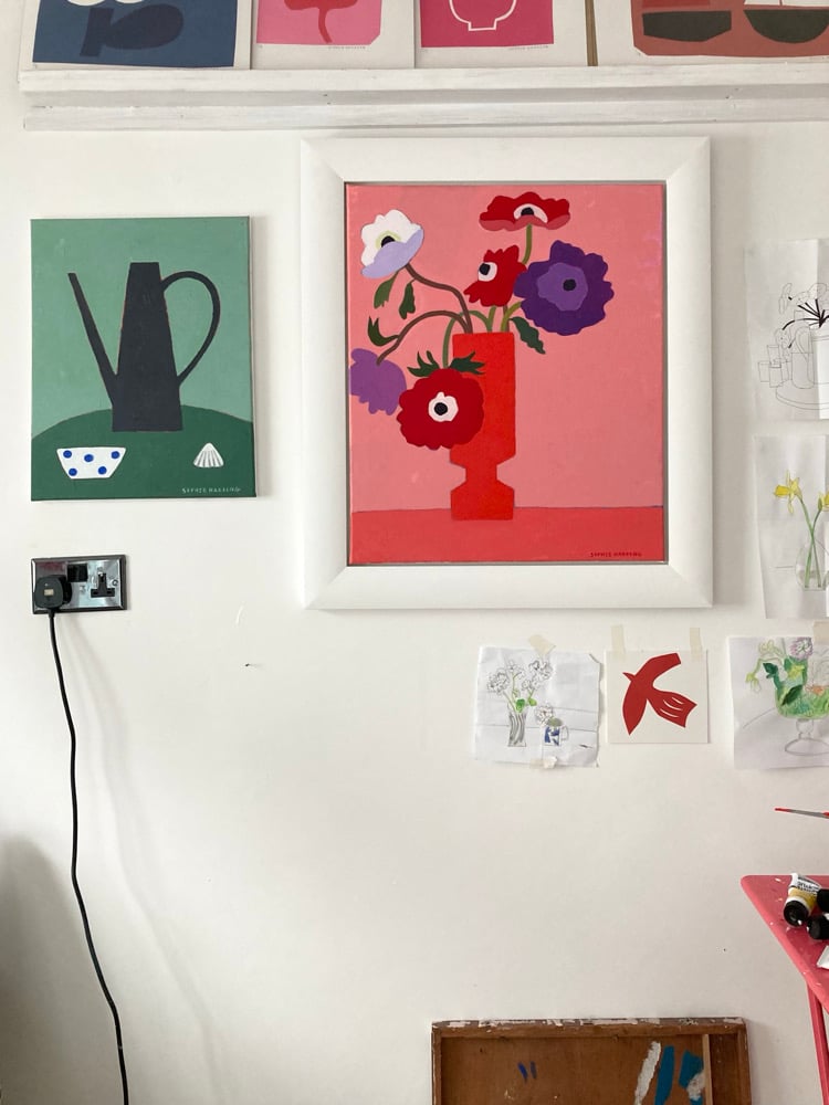 Original acrylic painting on canvas Inspired by anemones bought at a local florist A stunning piece to bring joy to any room in the house Size 50 x 60 cm Framed size 65 x 75 cm Free UK shipping
