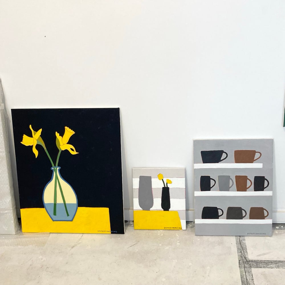 Original acrylic painting on linen Inspired by a visit to a gorgeous ceramic studio here in Penzance Size 26 x 30 cm Framed size 29 x 33 cm Buy framed or unframed Allow 3 weeks for framing Free UK shipping